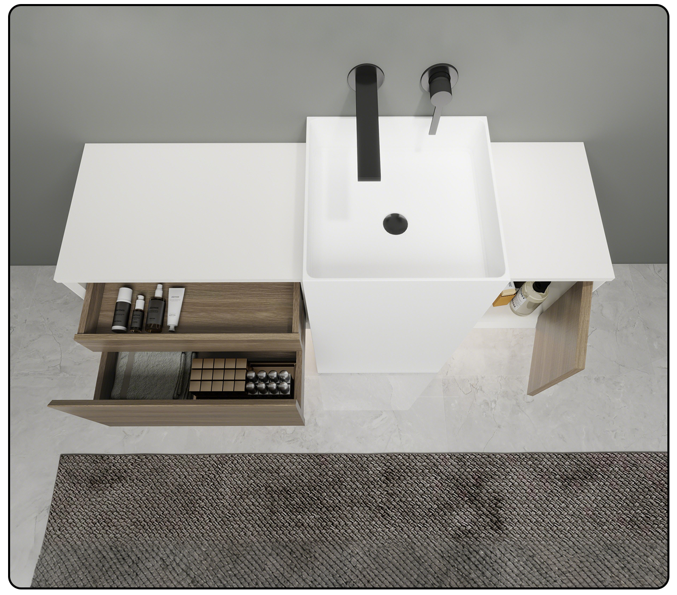 It is made of high-quality export-grade artificial stone in one piece, with a fine and warm surface. It has been certified by authoritative authorities as zero formaldehyde and no radiation. It can be used immediately after installation, providing greater peace of mind. The seamless process eliminates hygiene dead corners from the source. Stains are wiped clean with just one wipe. Combined with 99.9% physical antibacterial properties, it is not afraid of bacterial growth even in damp environments. Scratch-resistant and anti-yellowing, it remains as good as new even after long-term use.