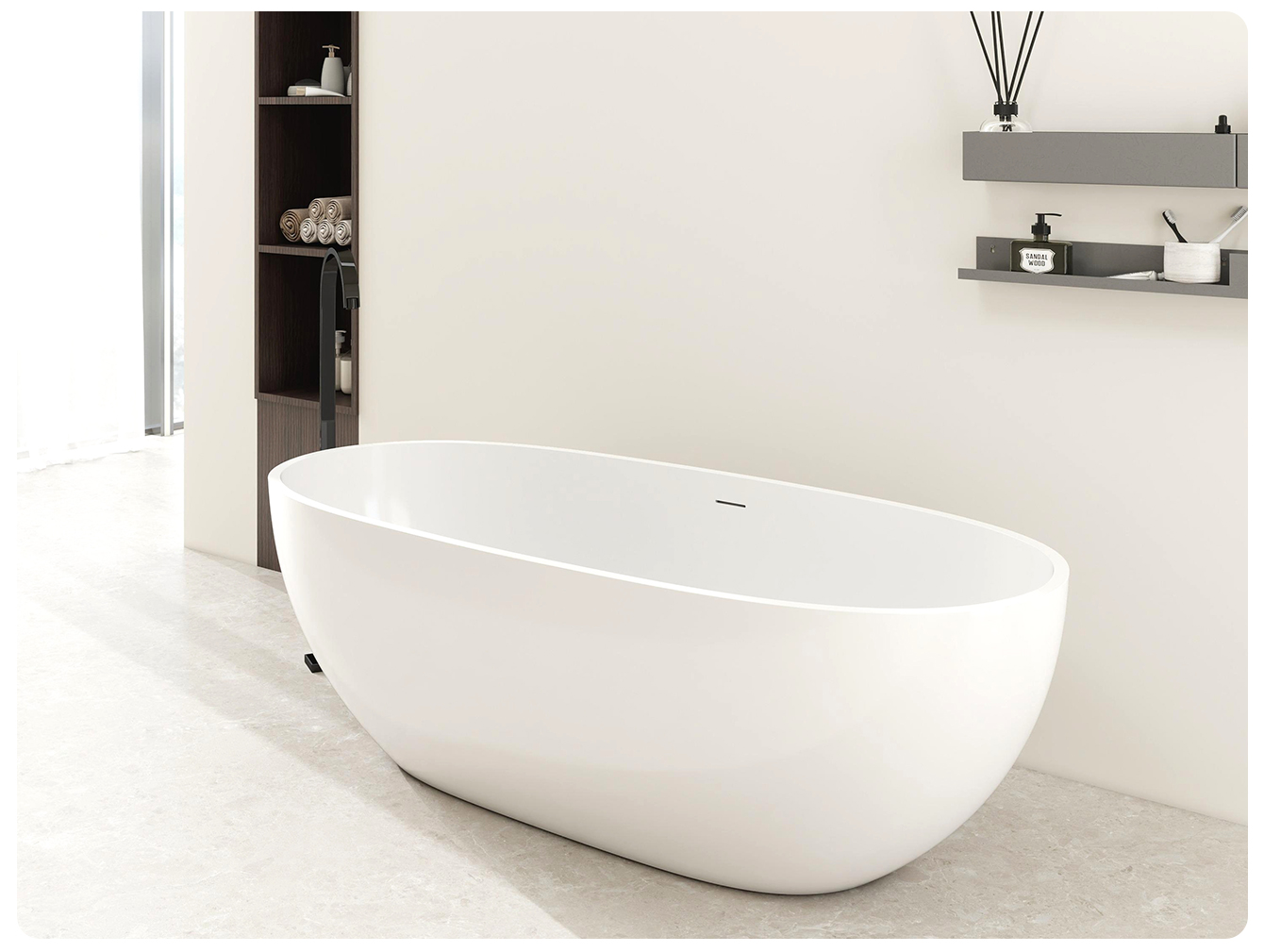 Moershu Luxury Artificial Stone Bathtub – Large Space Deep Bath for Home Use by Adults